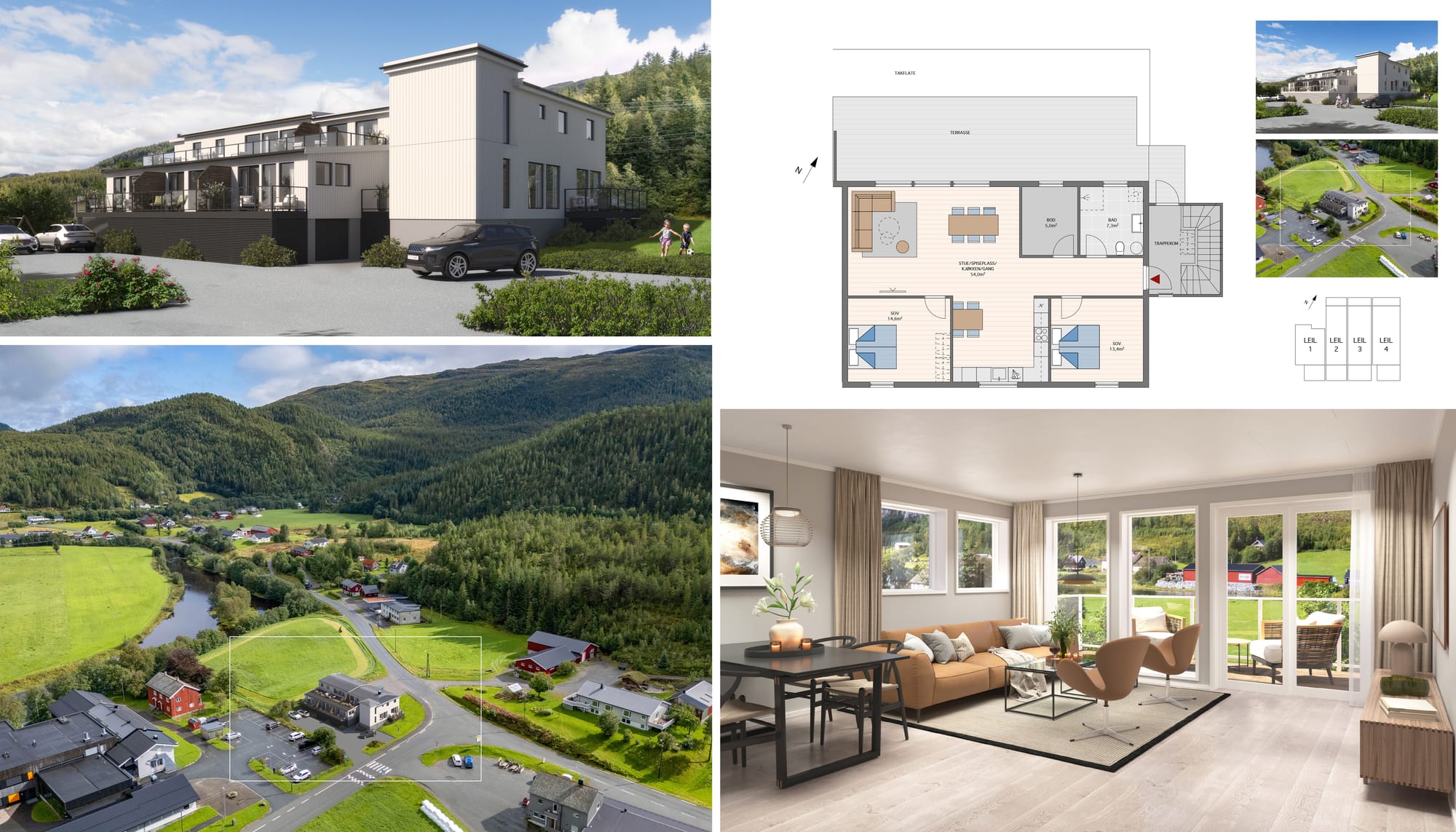 Nylander & Partners ved Silje selger dette prosjektet. Vår jobb var å lage 3D modell- 2D fargeplaner og 3D illustrasjoner ute og inne.