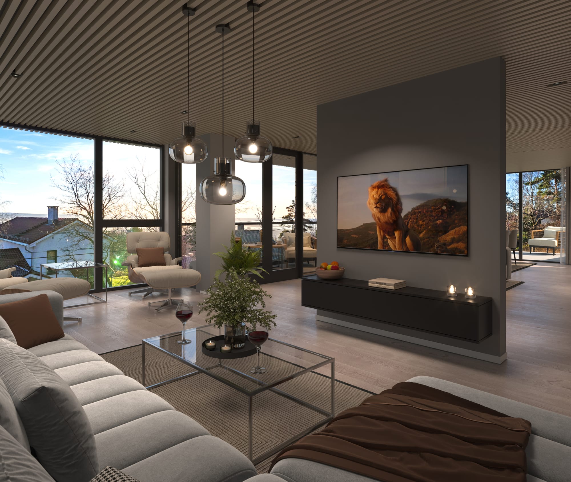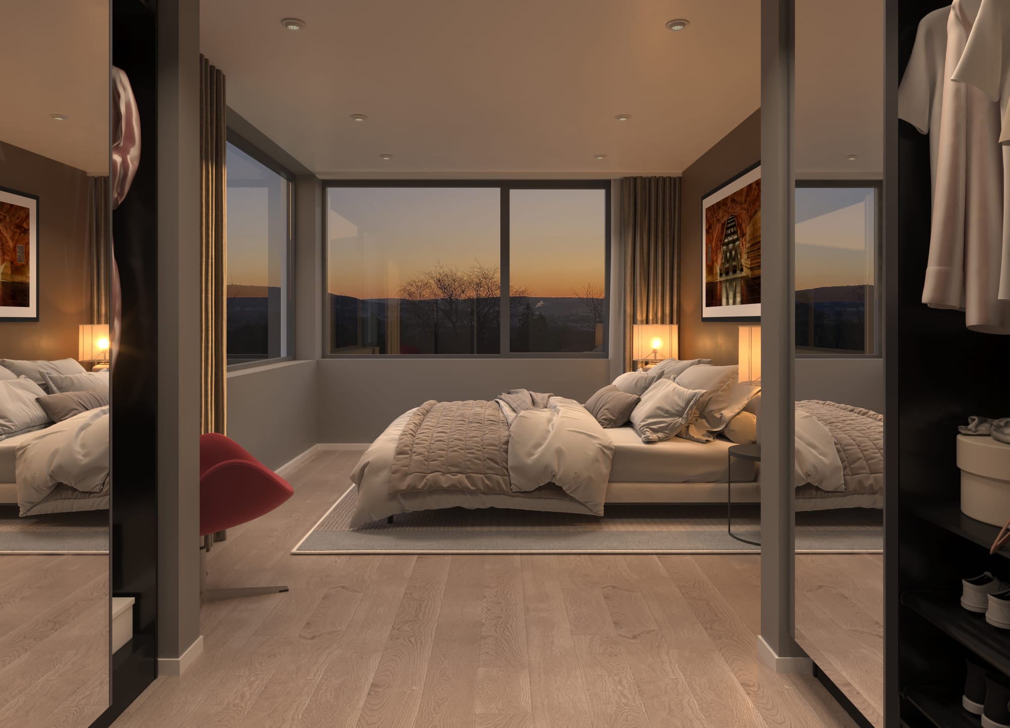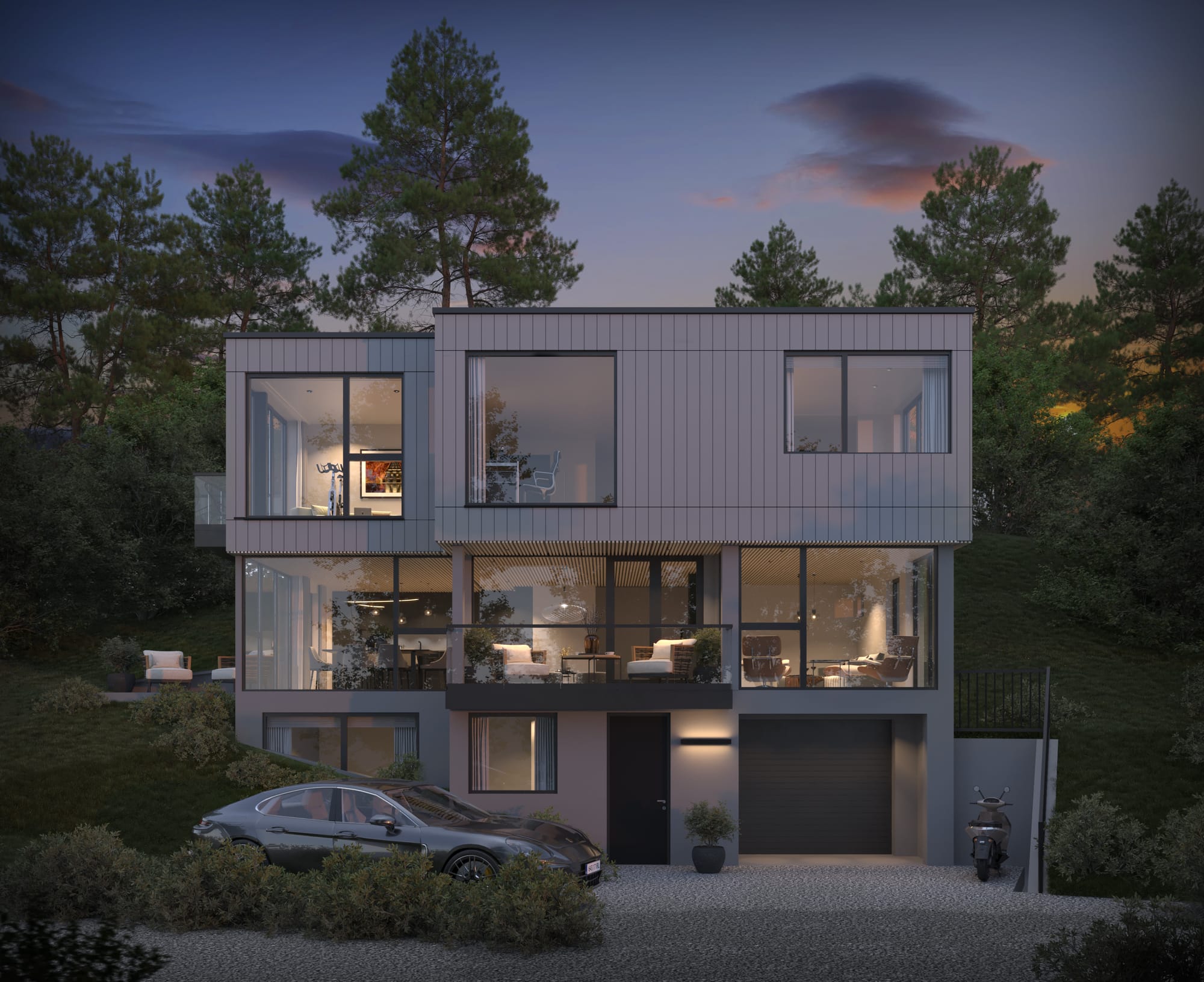 Vi fikk være med på å lage salgsbildene her. Selv fikk jeg gleden av å sitte på tomten en tidlig morgen å ta disse morgenstemningsbildene.