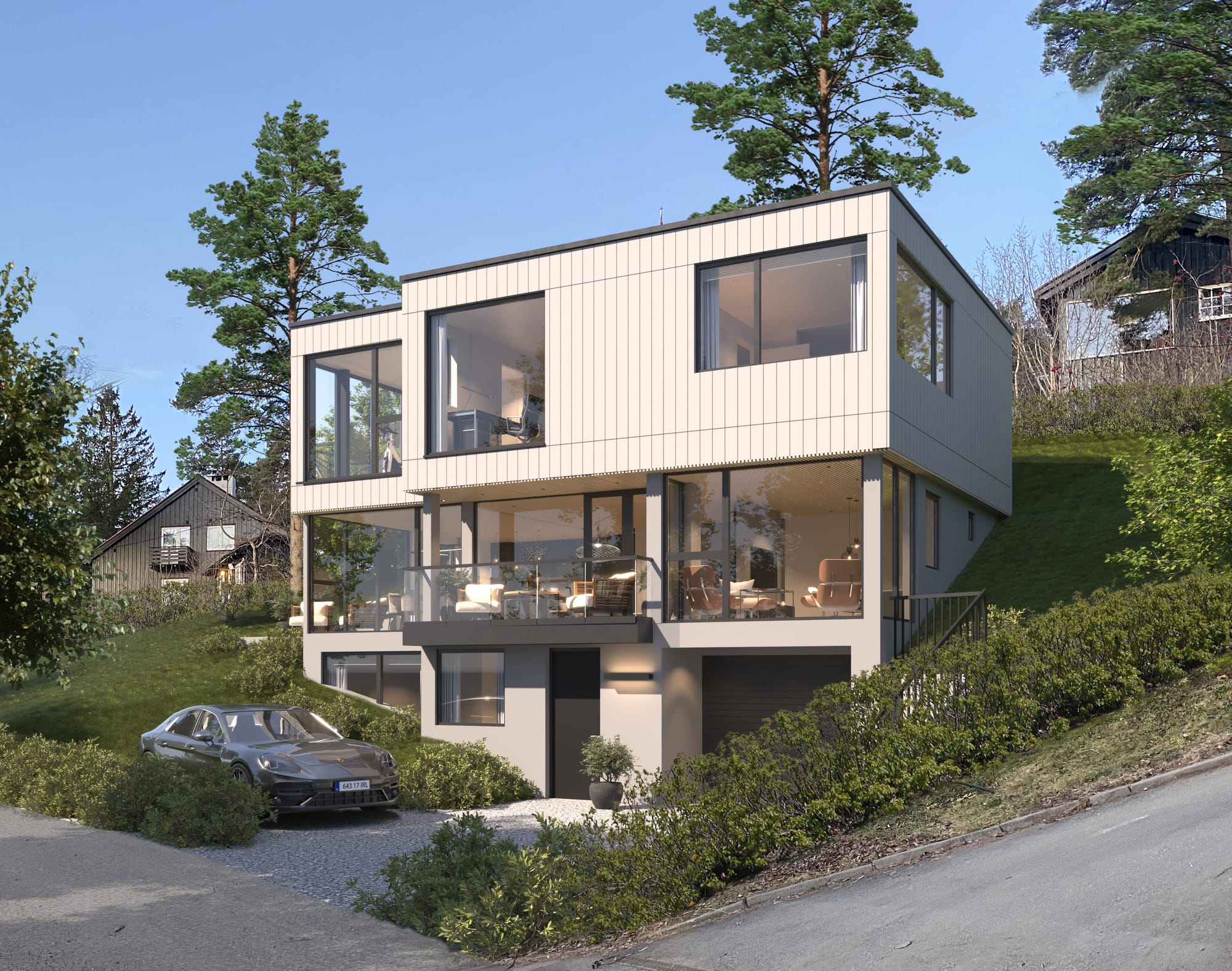 Tomt med magisk utsikt. Minimalistisk enebolig tegnet av Ark Nils Haugrud AS.